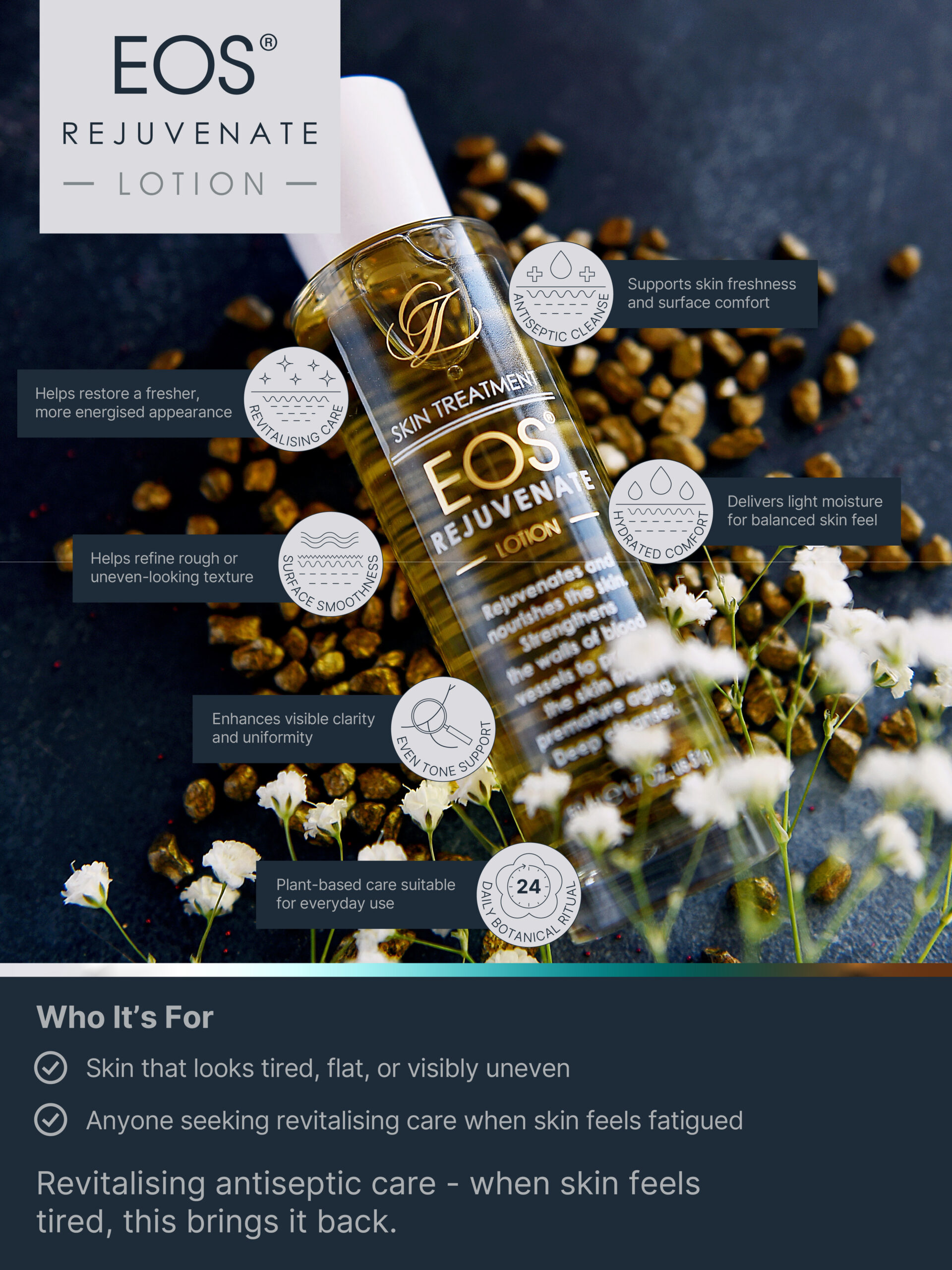 This plant-based cosmetic lotion helps visibly restore clarity, comfort, and smoothness. Enriched with vitamin-rich botanicals and antiseptic extracts, it rebalances skin that feels dull, rough, or fatigued — delivering a fresher, more energised appearance.
