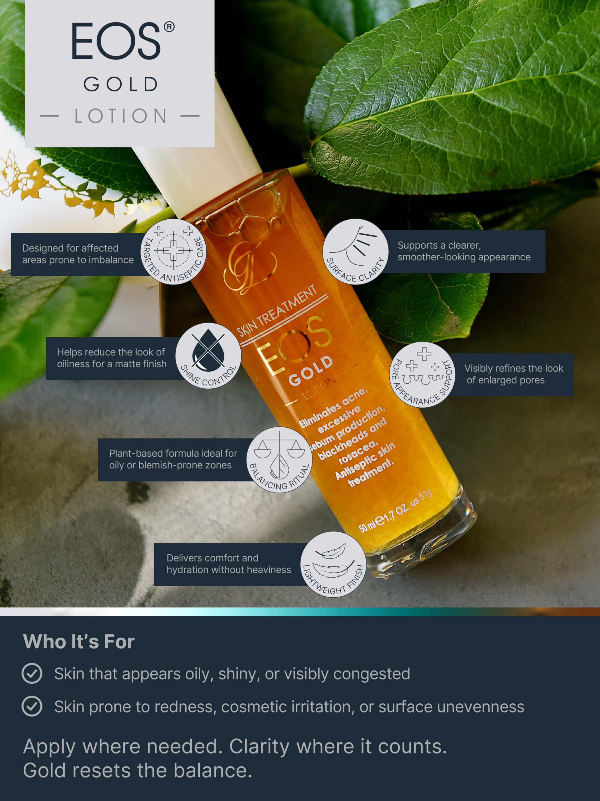 This precision-use lotion helps reduce the appearance of redness, pore enlargement, and cosmetic imbalance. Delivers antiseptic support where skin looks blotchy, patchy, or unresponsive to moisturisers—helping restore a clearer, calmer, more balanced look without heaviness or residue.